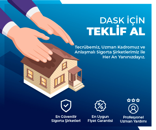 DASK (Zorunlu Deprem Sigortası) 17 Ağustos 1999 yılında ülkemizde meydana gelen büyük Adapazarı depreminden sonra, devlet tarafından zorunlu tutulan ve depremden sonra ya da deprem anında gerçekleşebilecek olumsuz durumlardan ötürü evlerin gördüğü zararı karşılayan bir sigorta türüdür. Doğal Afet Sigortaları Kurumu tarafından herhangi bir kar amacı gütmeden sunulan bir sigorta türü olan zorunlu deprem sigortası, coğrafi ve jeopolitik özelliklerimiz nedeniyle ülkemizde sık görülen deprem ve depremle beraber gelebilecek yangın, infilak, heyelan ve tsunami gibi durumların da oluşturabileceği hasarları mevcut poliçe kapsamında karşılamaya yönelik bir sigorta sistemidir. DASK’ın geçerli olması için yalnızca bulunulan binanın zarar görmesi gerekmez. Binanın bir kısmının, ana duvarının, istinat duvarının, tavan ve taban kısımlarının, merdiven ve asansör bölümünün, çatı ve bacayı kapsayan kısmının ya da bina çevresinin depreme bağlı ciddi zarar görmesi dahilinde de DASK işlevselliğini korur. Deprem hasarlarının karşılanması DASK poliçesi kapsamına alınsa da enkaz kaldırma masrafları, kira mahrumiyeti, iş durması, manevi tazminat talepleri vb. gibi zararlar DASK poliçesine dahil edilmez. DASK poliçesinde imzalanan sözleşmeyle sigortanın üst ve alt sınırı belirlenir ve bu poliçe size belirlenen alt ve üst sınırların doğrultusunda bir güvence sağlar. DASK’ın fiyatı belirlenirken konutun yapısı, yüz ölçümü ve konumu gibi unsurlar etkili olur. Yaptırılması kanunen şart koşulan zorunlu deprem sigortası, yapılacak olası bir tapu işleminde, arzu edilen konut kredisi alımında veyahut elektrik ve su aboneliği açtırma gibi işlemlerde mecburi olarak kamu kuruluşları tarafından talep edilir.